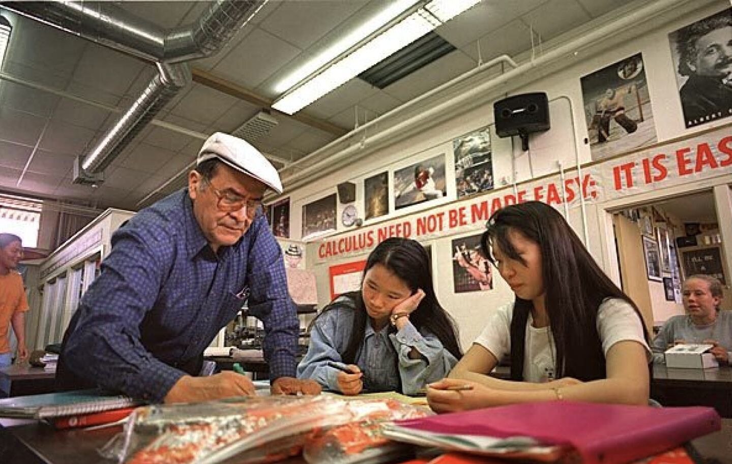 After just two years at Normal Superior, Escalante’s abilities in physics and mathematics were evident to both his classmates and teachers. The American Institute had a shortage of physics teachers, so Escalante was offered a job. Thus, at the age of 21, and without books or experience, Escalante began teaching physics. He learned teaching skills by emulating other teachers he respected. His eventual move to Los Angeles marked his first foray into American pedagogy, where he began working as a high school math teacher. Escalante was not a typical instructor, he disregarded standard teaching methods and sought to apply new approaches that allowed his students not only to understand the material but to become passionate about it. He firmly believed that every child was capable of success in mathematics if given the proper tools and motivation.