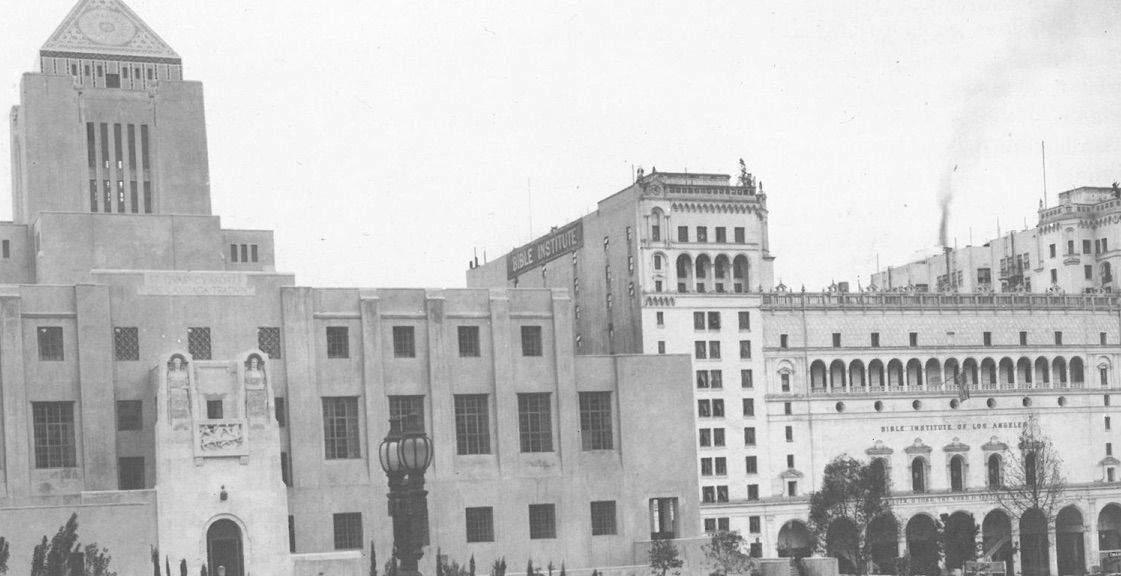 Construction of a new institute building in downtown Los Angeles began in 1913. The building featured an auditorium with a seating capacity of up to 3500. In the 1930s, two large neon signs with the phrase ‘Jesus Saves’ were installed on the rooftop, adding to the building’s religious significance. Furthermore, an 11-bell carillon was installed in the building and used to play hymns thrice daily.